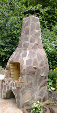 Bruchsteinkamin für den Garten mit Schamotte-Sichtmauerwerk