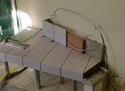 Kachelbank, elektrisch beheizt, mit Temperaturfühler und Thermostat